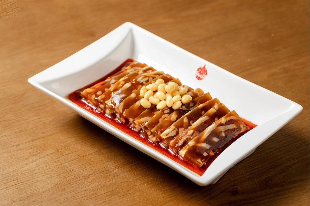 在烟台的年夜饭凉菜清单里,猪皮冻绝对拥有姓名,爽滑弹牙、鲜美不腻,晶莹剔透的模样自带“财源滚滚”的好寓意。传统做法讲究“慢工出细活”,猪皮反复刮净油脂,加葱姜八角慢熬两三个小时,撇去浮油后冷藏定型,切小块蘸上蒜泥、米醋、香油,Q弹爽口,鲜而不腻。